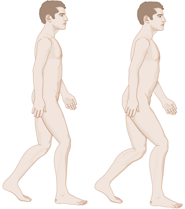De man op de linker tekening loopt met een soepel grote teengewricht. De man op de rechter tekening daarentegen heeft een functionele hallux limitus, hierdoor loopt hij met een iets meer gebogen heup, knie en enkel.